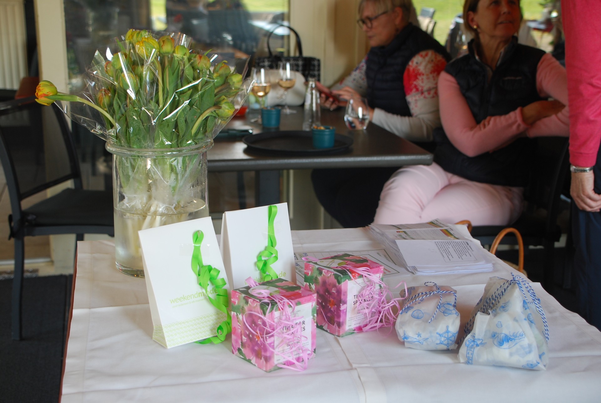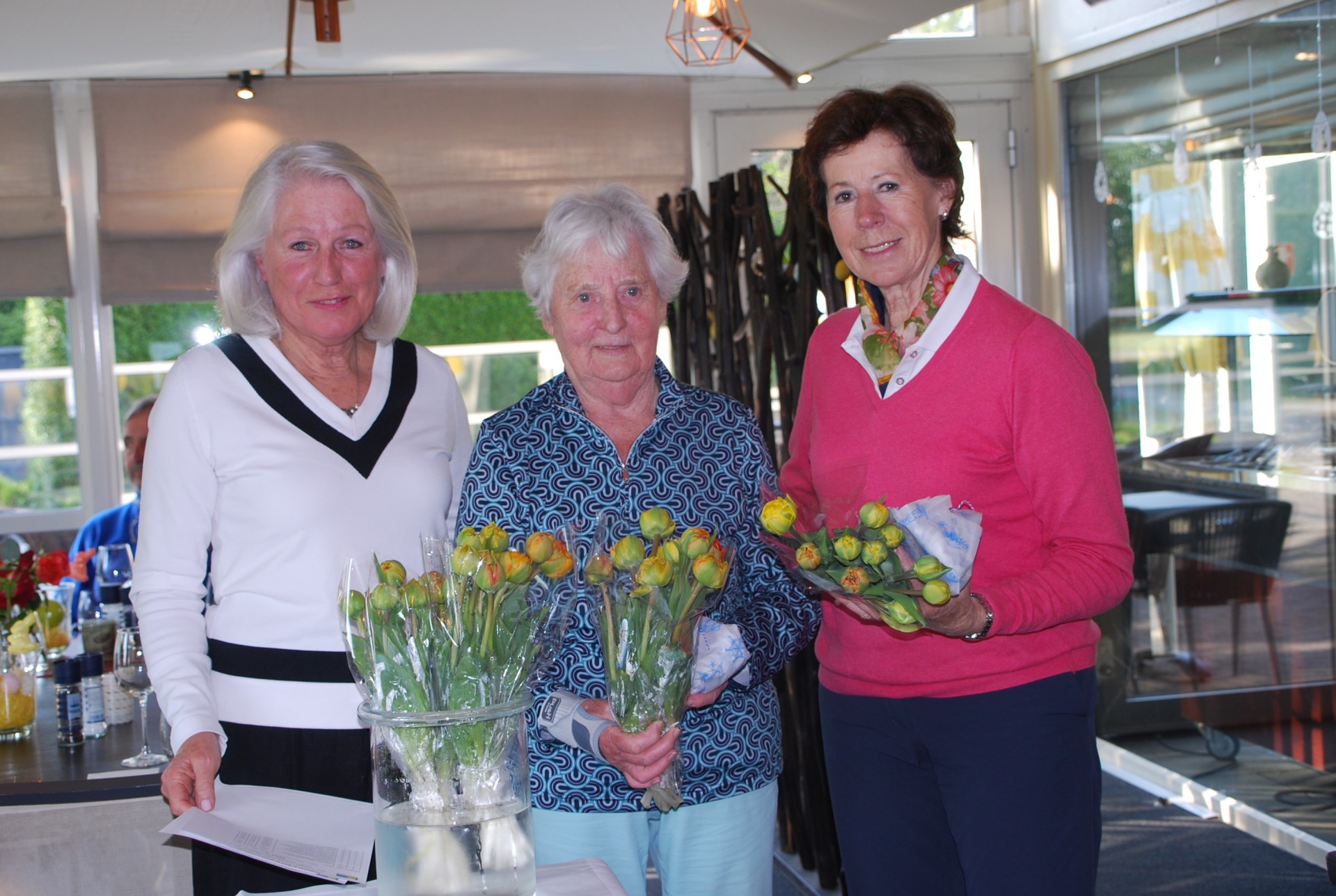 De nearest ging naar Rita Boute met een boeketje erbij en de Leary ging naar Marie Jeanne